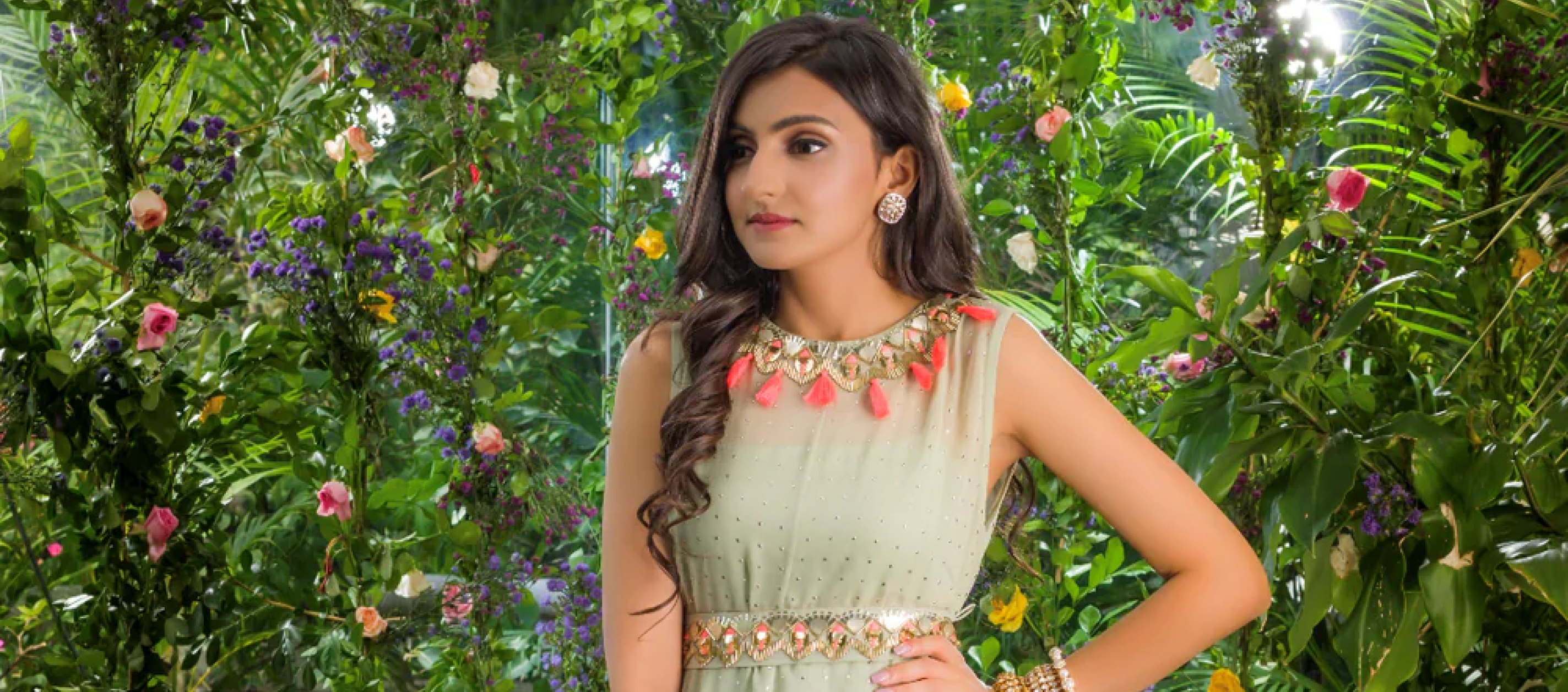 AARSI TIE- UP SHIRT WITH NEON GREEN TASSELS AND SHARARA